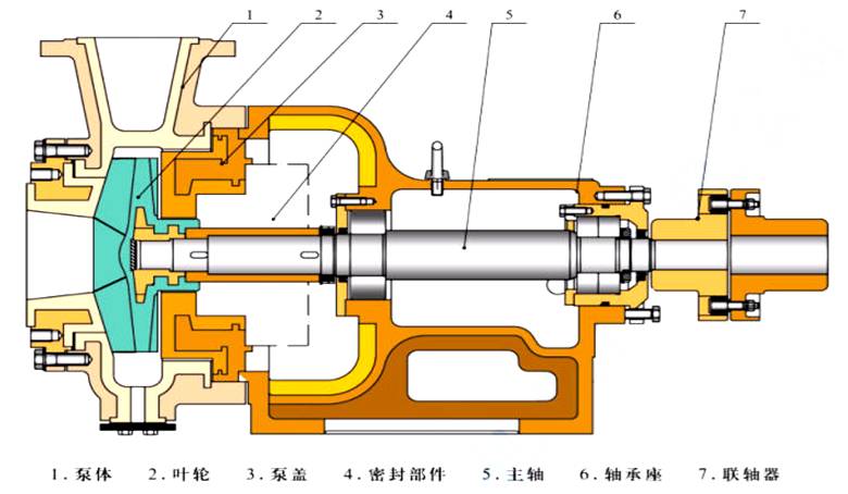 e.填料密封结构,可先将泵盖连同轴套从轴上取下,然后取下轴套,再顺次拆下压盖,填料和填料环等。